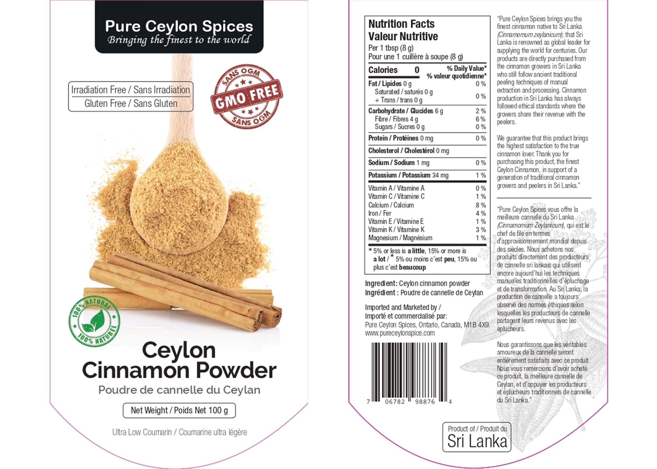 Pure Ceylon Cinnamon powder is sun dried and carefully milled in to a fine powder using best grades of cinnamon so as to make an enticing aroma and a delicate, tempting 'taste of the tropics' to many of the favorite recipes of a health-conscious daily user.